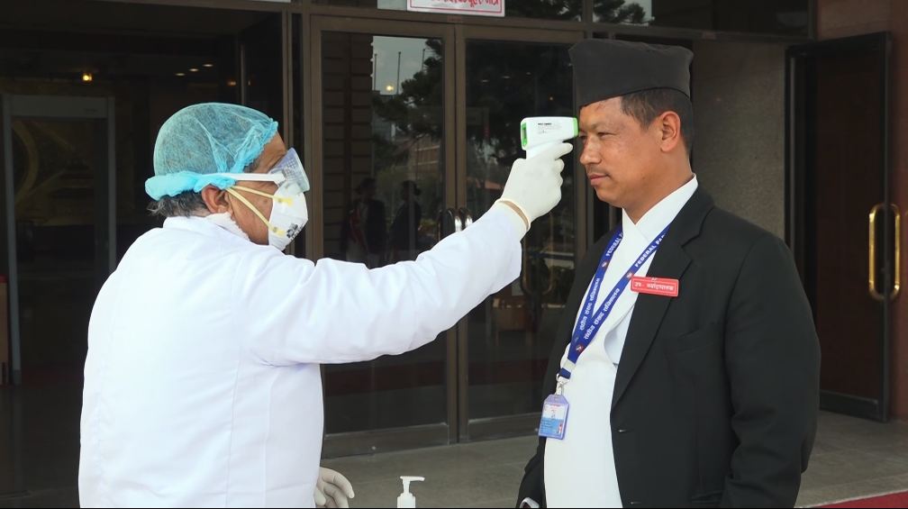 विश्वव्यापी बनेको कोरोना संक्रमणको सन्दर्भमा राष्ट्रियसभाका सदस्यहरुको ज्वरो परीक्षण गरिएको छ। बिहीबार राष्ट्रियसभाको बैठक बस्नुअघि संसद भवन बाहिर राष्ट्रियसभा सदस्यहरुको ज्वरो परीक्षण गरिएको हो। सांसदहरुलाई स्यानिटाइजरले हात धोएर मात्रै संसद भवन भित्र प्रवेश दिइएको थियो। राष्ट्रियसभा सदस्य रमेशजङ्ग रायमाझीले सरकारले आफै गरेको निर्णय कार्यान्वयन नहुदा चेकजाँच गरेर मात्रै संसदभित्र छिर्नुपर्ने अवस्था आएको बताउनुभयो। सरकारले जनतालाई आतंक बनाउन मात्र निर्णयहरु गर्ने तर कार्यान्वयन नगर्ने उहाँले बताउनुभयो। सरकारी निर्णयले कालोबजारी व्यापक बनेको आरोप उहाँको छ।