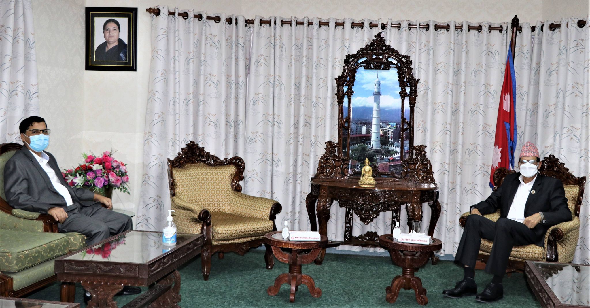 सभामुख अग्निप्रसाद सापकोटा र अर्थमन्त्री जनार्दन शर्मा ‘प्रभाकर’बीच छलफल भएको छ । सिंहदरबारस्थित सभामुखको कार्यकक्षमा सोमबार सङ्घीय संसद्लाई व्यवस्थित र प्रभावकारी ढङ्गले सञ्चालनका लागि आर्थिक व्यवस्थापनका विषयमा केन्द्रित रहेर छलफल भएको सभामुख सापकोटाको सचिवालयले जनाएको छ । त्यस क्रममा उनीहरुबीच विपद् सङ्कटग्रस्त क्षेत्र घोषित जिल्लाहरूमा सरकारको प्राथमिकताबारेमा पनि छलफल भएको छ । सभामुखको जिज्ञासामा अर्थमन्त्री शर्माले विपद्ग्रस्त सिन्धुपाल्चोक जिल्लाको मेलम्ची क्षेत्रमा तत्काल बेलीब्रिज राख्न निर्देशन दिइसकेको जानकारी गराएका छन् । सरकारले साउन ४ गते सिन्धुपाल्चोक र मनाङलाई विपद् सङ्कटग्रस्त क्षेत्र घोषणा गरेको थियो ।