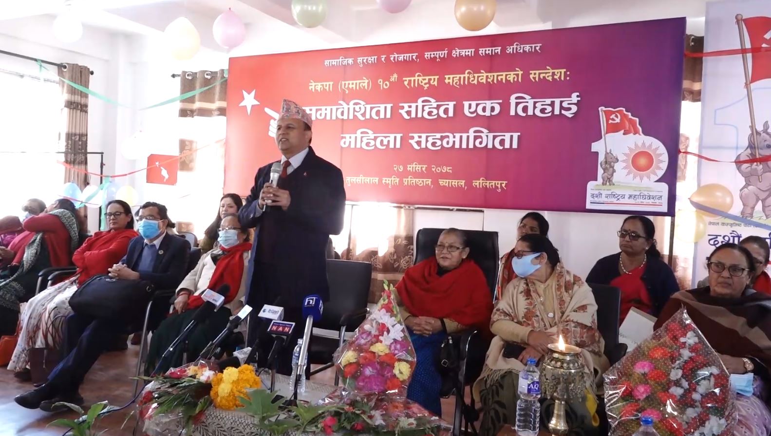 नेकपा एमालेकी उपाध्यक्ष अष्टलक्ष्मी शाक्यले नयाँ नेपाल बनाउने दायित्व एमालेको काधमा रहेको बताउनुभएको छ । अखिल नेपाल महिला संघले सोमबार ललितपुरमा आयोजना गरेको समावेशिता सहित एक तिहाई महिला सहभागीता बिषयक अन्तक्र्रियामा शाक्यले अधिकार सहितको समृद्ध नेपाल एमालेबाहेकले बनाउन नसक्ने समेत बताउनुभयो । उहाले मुलुक बनाउने एमालेको अभिभारलाई पुरा गर्नका लागि पार्टी भित्रको महिला शक्ति शसक्त भएर लाग्नुपर्ने धारणा पनि राख्नुभयो । अहिले देखिएको बेतिथी बिकृतिलाई अन्त्य गर्दै मुलुकमा राजनीतिक स्थायीत्व कायम गर्नुपर्ने उहाको भनाई छ । उहाले पार्टीलाई एकतावद्ध र बिचारसहित बिधियुक्त बनाउदै समाजलाई रुपान्तरित गर्न एमालेले मुख्य भूमिका खेल्नुपर्ने उल्लेख गर्नुभयो । कार्यक्रममा एमाले महासचिव शंकर पोखरेलले उग्रताका कुरा गर्ने अन्त्यमा दक्षिणपन्थी अवसरबादको सिकार हुन्छ भन्ने कुरा प्रचण्ड र माधव नेपालमा देखिएको बताउनुभयो । उहाले कांग्रेसलाई नेता बनाएर कम्युनिष्ट आन्दोलनलाई कमजोर बनाउन प्रचण्ड र माधव नेपालले भूमिका खेलेको आरोप पनि लगाउनुभयो । उहाले एमालेले अघि सारेको एजेण्डा र लक्ष्यका आधारमा पार्टीलाई तिनै तहको निर्वाचनमा बहुमतप्राप्त पार्टीको रुपमा स्थापीत गर्नुपर्ने धारणा राख्नुभयो ।