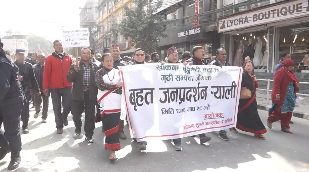 सरकारले अघि सारेका विभिन्न परियोजनाहरुले ऐतिहासिक नगर नै समाप्त पार्न खोजेको भन्दै खोकना र बुंगमतीबासीहरूले विरोध प्रदर्शन गरेका छन्। काठमाडौं तराई द्रुतमार्ग, बाहिरी चक्रपथ निर्माण र स्मार्ट सहर निर्माण जस्ता परियोजनाले नेवार समुदायको सभ्याता र संस्कृति नष्ट गरी ऐतिहासिक नगर नै समाप्त पार्न खोजेको भन्दै उनीहरुले विरोध प्रदर्शन गरेका हुन्। खोकना बुङ्मती बचाउ, गुठी सम्पदा जोगाउ भन्ने नारासहित नेवार खोकना र बुङमतीका स्थानीयहरुले राजधानीमा बृहत जनप्रर्दनी ऱ्याली निकालेका छन्। ‘बोङ खोकनामा बाह्य चक्रपथ चाँहिदैन, बोङ खोकनामा सुरुङमार्ग चाँहिदैन, आइ.एल.ओ. १६९ को उलंघन गर्न पाईंदैन’, लेखिएका प्लेकार्ड सहित प्रदर्शन गरिएको हो।