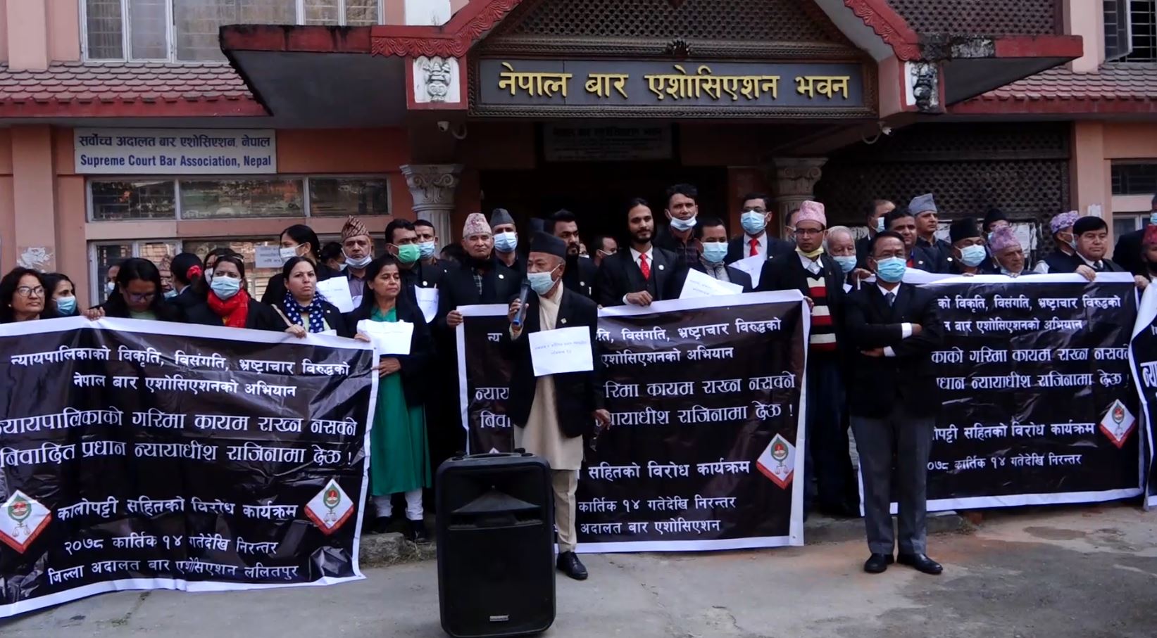 नेपाल बारको अगुवाईमा प्रधानन्यायाधीशविरुद्ध बुधबार पनि सर्वोच्च अदालतमा विरोध प्रदर्शन भएका छ । प्रधानन्यायाधीश चोलेन्द्र शमशेर जबराको राजीनामा माग गर्दै भईरहेको आन्दोलनमा सर्वोच्च परिसरमा कानुन व्यवसायी र प्रहरीबीच केहीबेर ठेलमठेल भएको थियो । सो क्रममा प्रदर्शनकारीले प्रधानन्यायधिशको राजीनामा माग गर्दै नारावाजी गरेका थिए । नेपाल बार एसोसिएसनले प्रधानन्यायाधीश चोलेन्द्रशमशेर जबराले मंसिर ३ गतेभित्र राजीनामा नदिए अर्को चरणको आन्दोलन गर्ने चेतावनी पनि दिएको छ । बिरोधपछि बारमा आयोजित सभामा अधिवक्ताहरुले न्यायालयमा विकृति ल्याएकाले प्रधानन्यायधिशबिरुद्ध आन्दोलन गर्नुपरेको बताए । बरिष्ठ अधिवक्ता शम्भु थापाले न्यायाधीशले घुस पाएर फैसला गर्ने भएकाले आन्दोलन गर्नुपरेको बताउनुभयो । घुस खाएका न्यायाधीशले फैसलामा अवैधलाई अवैध भन्न नसकेको पनि उहाले बताउनुभयो । वरिष्ठ अधिवक्ता थापाले प्रधानन्यायाधीशबाट जबराले राजीनामा नदिएसम्म नेपाल बारले आन्दोलन गरिराख्ने उल्लेख गर्नुभयो । प्रधानन्यायधिशको राजीनामा माग गर्दै बारले निरन्तर आन्दोलन गर्दै आएको छ ।