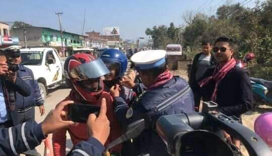 पछाडी बस्ने यात्रुले हेल्मेट लगाउन आवश्यक रहेको बताउँदै प्रहरीले सुरक्षित यात्राका लागि हेल्मेटको फित्ता लगाउनसमेत अनुरोध गरेको छ।