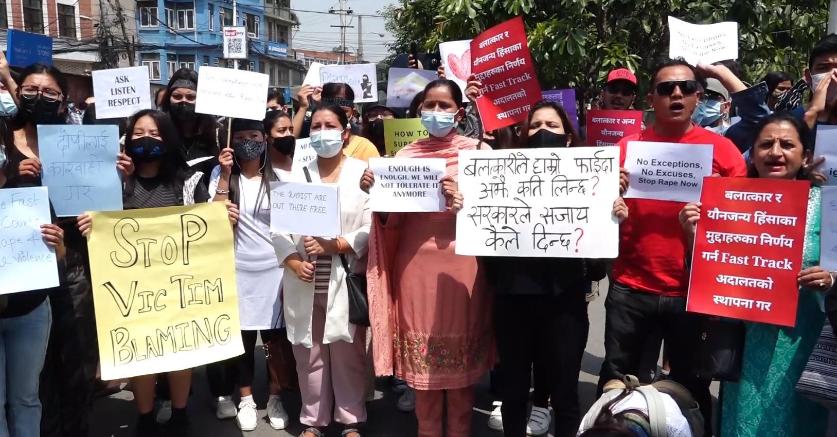 हालै सार्वजनिक भएको बलात्कार घटनामा संग्लनलाई कारवाही र पीडितलाई न्याय दिनुपर्ने भन्दै काठमाडौंको माइतीघरमा प्रदर्शन गरिएको छ । आठ बर्षअघि भएको मिस ग्लोबल इन्टरनेसनल प्रतियोगितामा सहभागी हुँदा होटलमा बोलाएर बलात्कार गरेको र त्यसपछिपनि निरन्तर शोषण गरिएको भन्दै एक युवतीले सामाजिक सञ्चालमार्फत खुलासा गरेपछि प्रदर्शन भएको हो । प्रदर्शनमा सहभागीहरुले बलात्कार र अन्य यौनजन्य हिंसासम्बन्धी उजुरी गर्ने हदम्याद हटाउनुपर्ने, दोषीलाई कडा कारवाही गर्नुपर्ने र पीडितलाई न्याय दिनुपर्ने भन्दै नारावाजी गरेका थिए । त्यस्तै उनीहरुले यस बिषयमा छिटो अनुसन्धान सुरु गर्न पनि राज्यको ध्यानाकर्षण गराएका थिए । बुधबार टिकटक र बिहीबार इन्स्टाग्रामबाट भिडियोमार्फत पीडित युवतीले आफूमाथि भएको घटनाको खुलासा गरेपछि युवाहरुले प्रदर्शन सुरु गरेका छन् ।