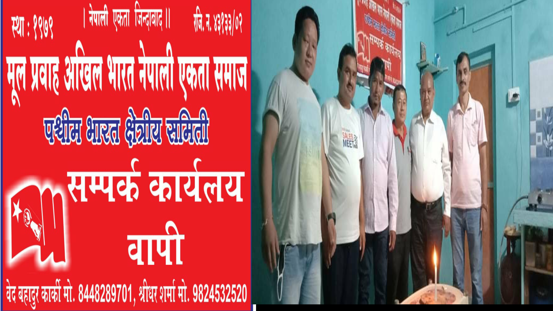 सम्पर्क कार्यालय नहुँदा प्रवासी नेपालीहरुलाई पनि आफ्ना समस्या राख्न असहज भएको, मूल प्रवाहको दैनिक कार्य एवं विभिन्न बैठक र केन्द्रीय स्तरबाट आउने नेताहरुलाई बस्ने व्यवस्था गर्न पनि गाऱ्हो भएपछि हिजोदेखि कार्यालय पुःन सञ्चालनमा ल्याइएको मूल प्रवाह अखिल भारत नेपाली एकता समाज पश्चिम भारत क्षेत्रीय समितिका अध्यक्ष वेद बहादुर कार्कीले बताउनुभयो । अध्यक्ष बेद बहादुर कार्की, कोषाध्यक्ष श्रीधर शर्मा र केन्द्रीय सदस्य एवं पेशेवर गोविन्द बहादुर थापालाई कार्यालय व्यवस्थापनको जिम्मा दिइएको जनाइएको छ । क्षेत्रीय समितिले पश्चिम भारत क्षेत्रका सबै नगर समिति र सम्पुर्ण नेपाली दाजु भाई तथा दिदीबहिनीहरुलाई आवश्यक भए अनुसार सम्पर्क गर्न अपील गरेको छ ।