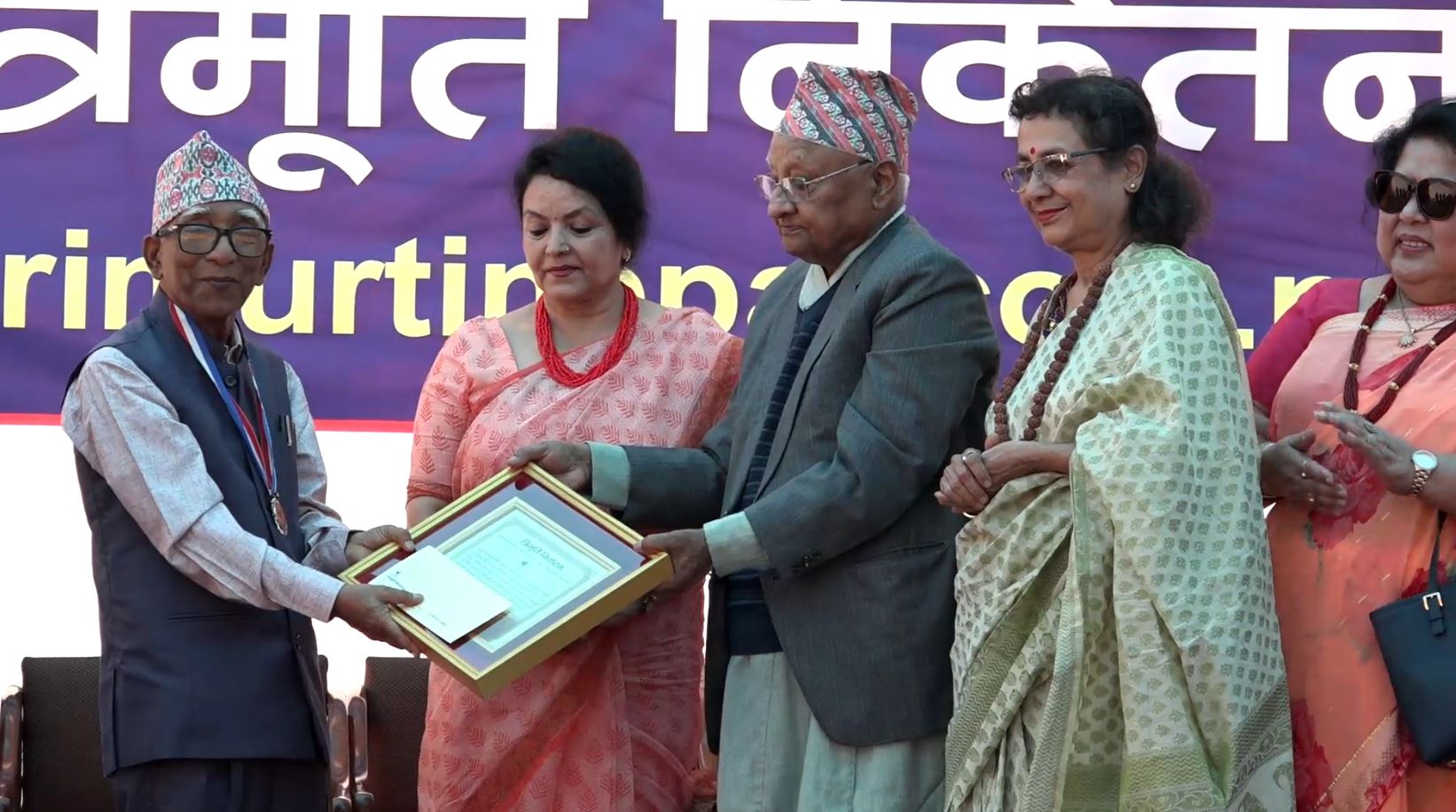 Trimurti Niketan has given Lekhnath Poudyal Award to Govindaraj Binodi. The Lekhnath Poudyal Award was given to a comedian dedicated to Nepali language and literature during a program organized in Kathmandu on Saturday on the occasion of Trimurti Day. Similarly, Bal Krishna Sum Award was given to Mithila Sharma and Shailendra Sakar was given Devkota Poetry Award. The amount of all the three awards is Rs. 1 lakh. Similarly, a ‘Bhadra Ghale Medal’ worth Rs 25,000 was awarded to Taranath Dahal and Prof Dr Usha Thakur. Similarly, Satya Mohan Joshi Centenary Medal has been awarded to 58 people for dedicating themselves to the elevation of Satya Mohan Joshi. Prof. Dr. Vasudev Tripathi, General Critic, presented various awards of Trimurti Niketan at the program. The Satya Mohan Joshi Centenary Medal has already been won by 226 people. The Trimurti Niketan was established in honor of the great poet of Nepali language and literature, Lekhnath Poudyal, Natya Samrat Bal Krishna Sam and the great poet Laxmi Prasad Devkota.